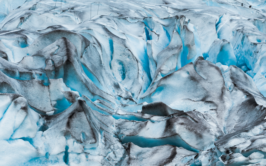 PS. Тот кусок льда, что плывет по реке на четвертом кадре, упал в эту самую реку на моих глазах. Его объем — примерно кубометр, соответсвенно масса — около тонны. Река вздрогнула. Вполне себе нередко бывает, что падает глыба тонн в 10-15. Тогда река прыгает во все стороны метров на 100, практически цунами. На леднике множество знаков предупреждает об этих опасностях. В общем, ледники красивы, но требуют к себе уважения.